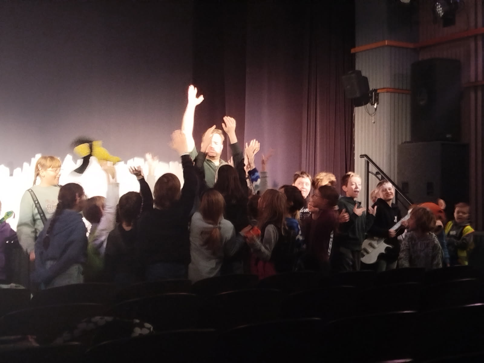 Dzieci miały okazję spróbować swoich sił na scenie, pracując z rekwizytami oraz lalkami, które miały zostać wykorzystane podczas spektaklu. Było to niezwykle ciekawe doświadczenie i możliwość poznania teatru „od kuchni”.