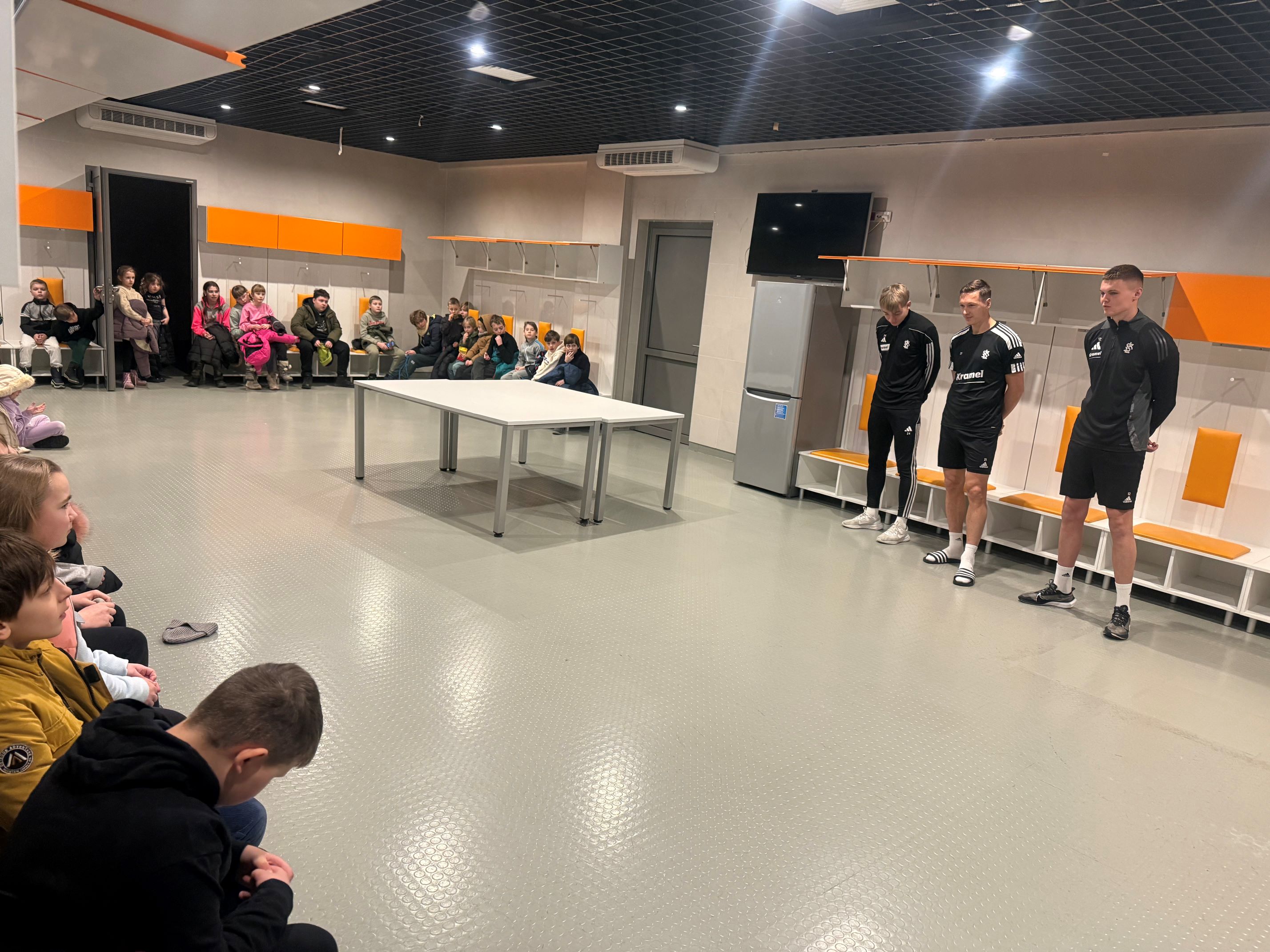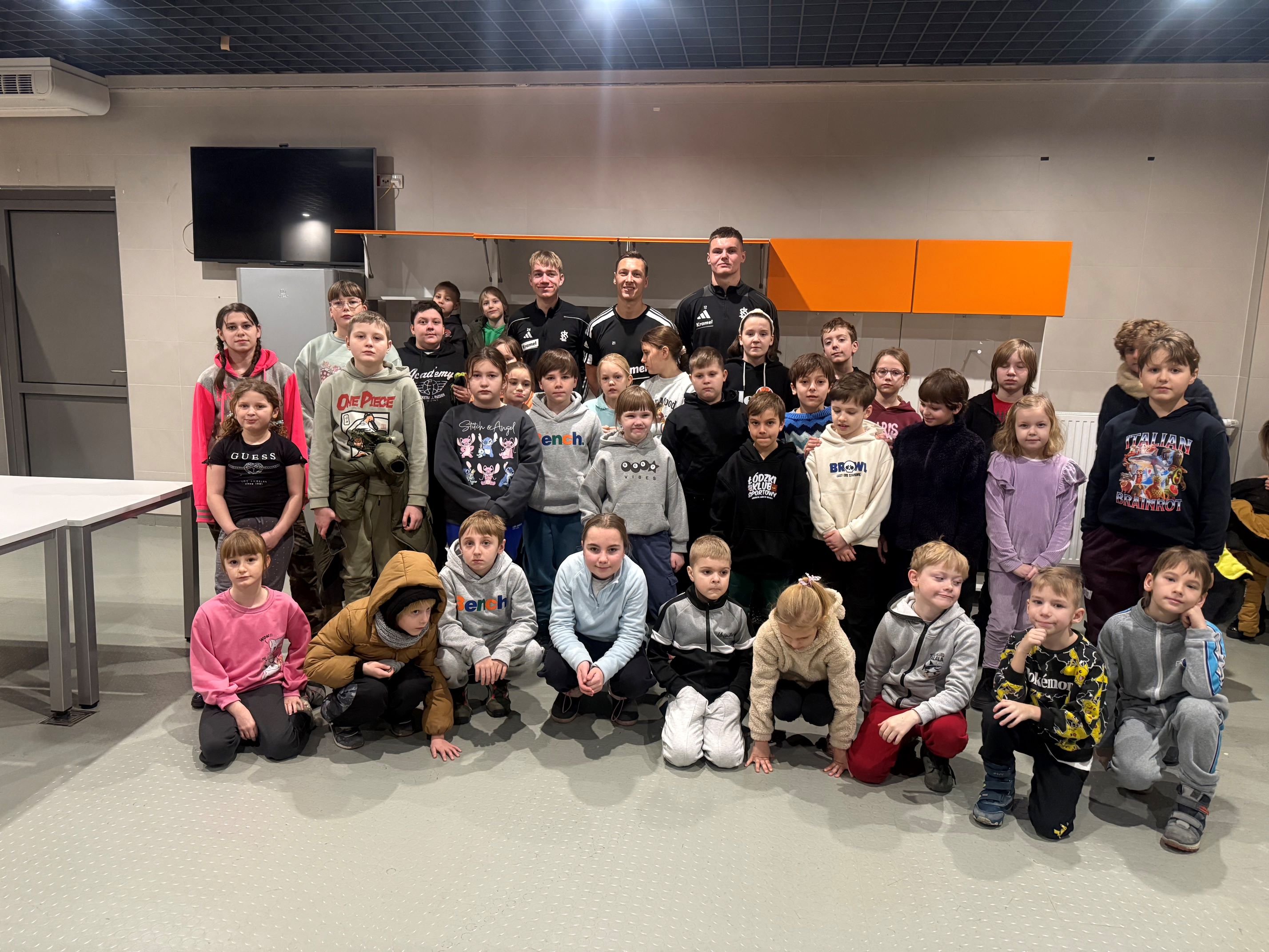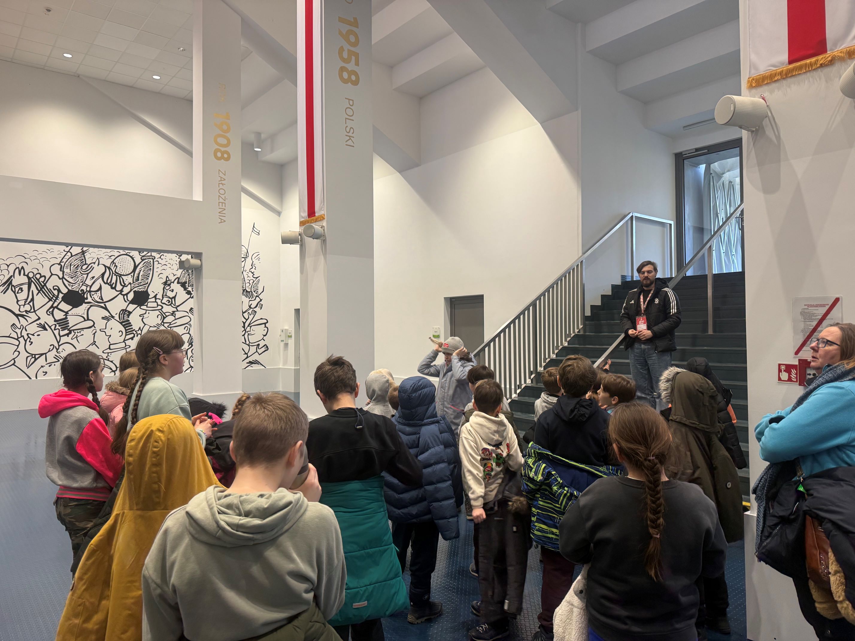 Naszą przygodę rozpoczęliśmy od zwiedzania stadionu ŁKS oraz spotkania z zawodnikami klubu. Dzieci miały okazję wejść na murawę i zasiąść na ławce rezerwowych, co wzbudziło wiele emocji. Następnie uczestnicy spotkali się z trzema piłkarzami pierwszej drużyny – Mateuszem Wzięchem, Mateuszem Kupczakiem oraz Łukaszem Bombom – z którymi mogli porozmawiać i zadać pytania.