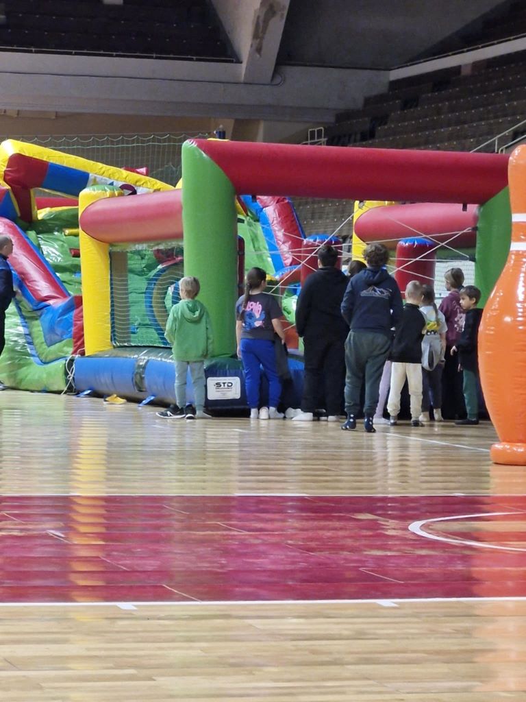 Po zwiedzaniu udaliśmy się na zajęcia sportowe na MOSiR. Na miejscu dzieci mogły korzystać z dmuchańców, grać w piłkę nożną, siatkówkę oraz spróbować swoich sił w wielu innych dyscyplinach sportowych.