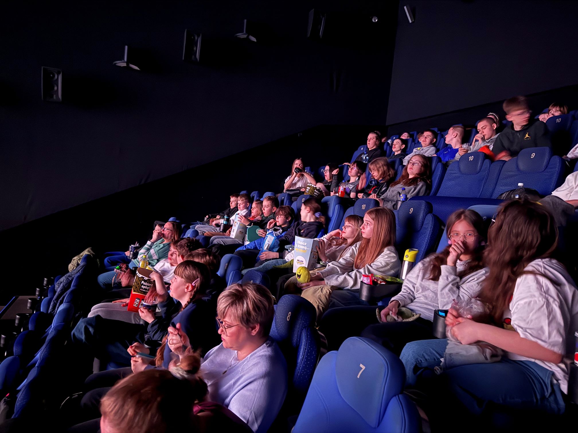 Uczniowie klas 4–8 pierwszy dzień wiosny świętowali, opuszczając szkolne ławki i wybierając się do kina na film „Zmiennokształtni 2”. Na miejscu zakupili popcorn i zajęli miejsca na sali kinowej.