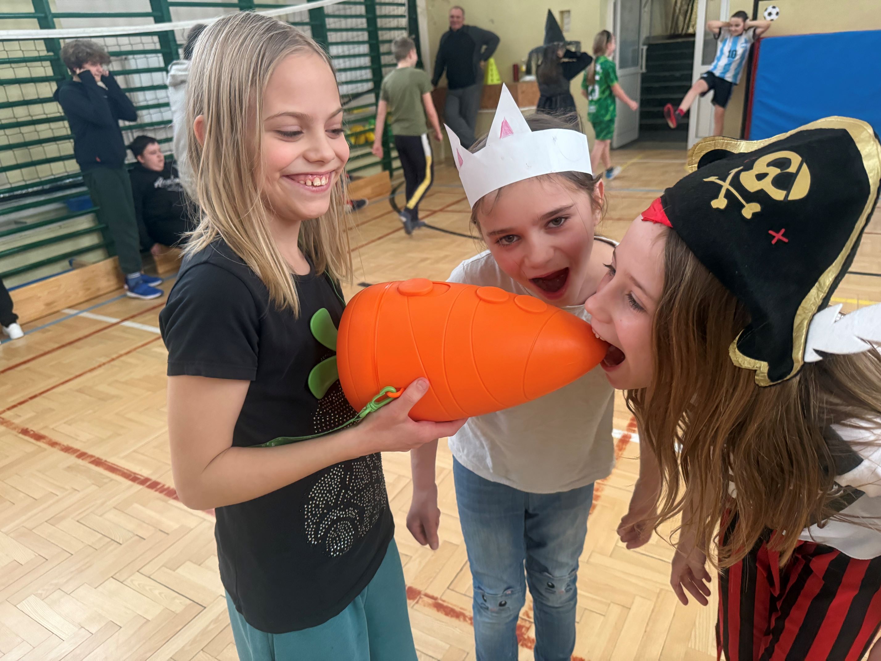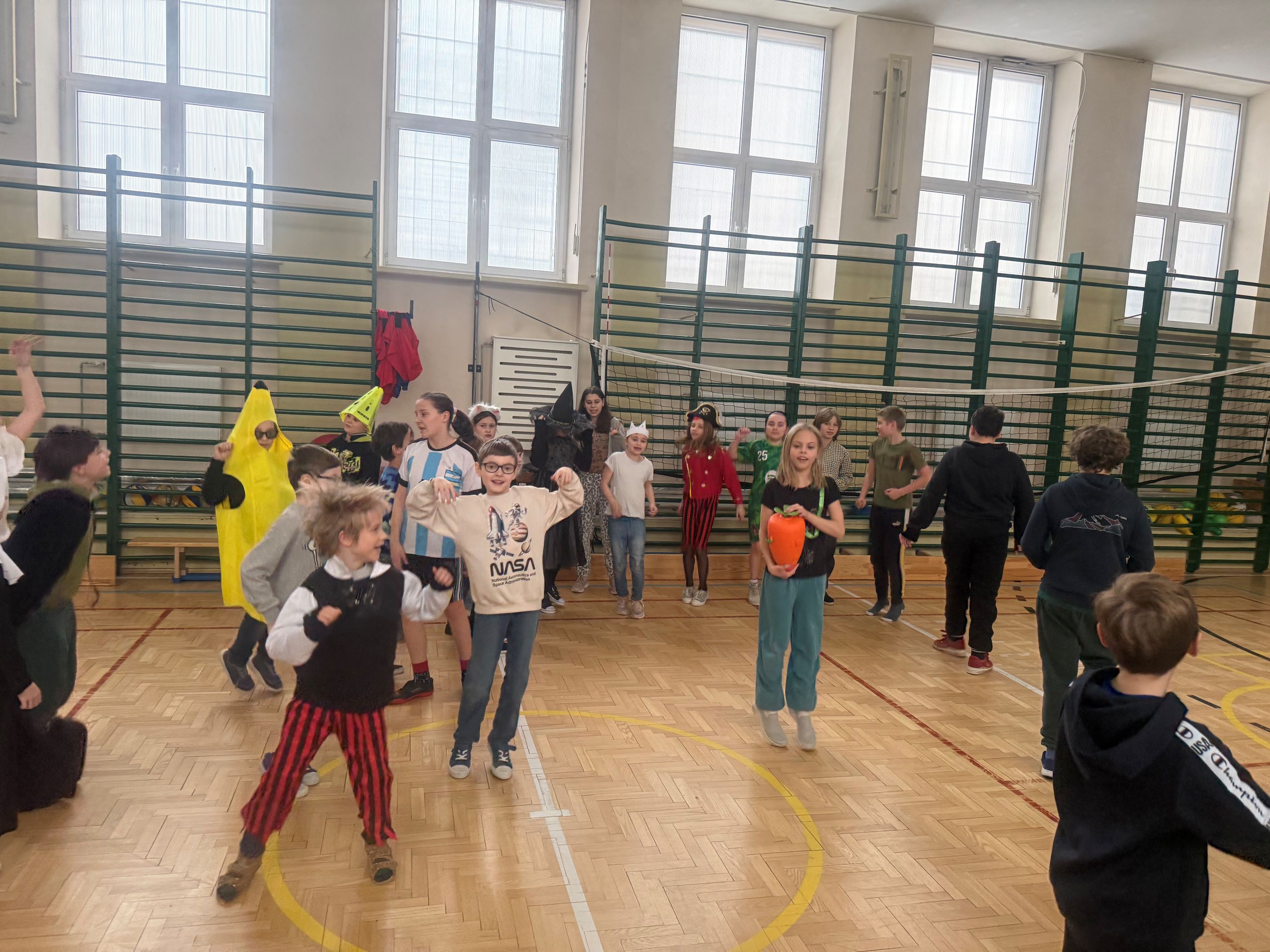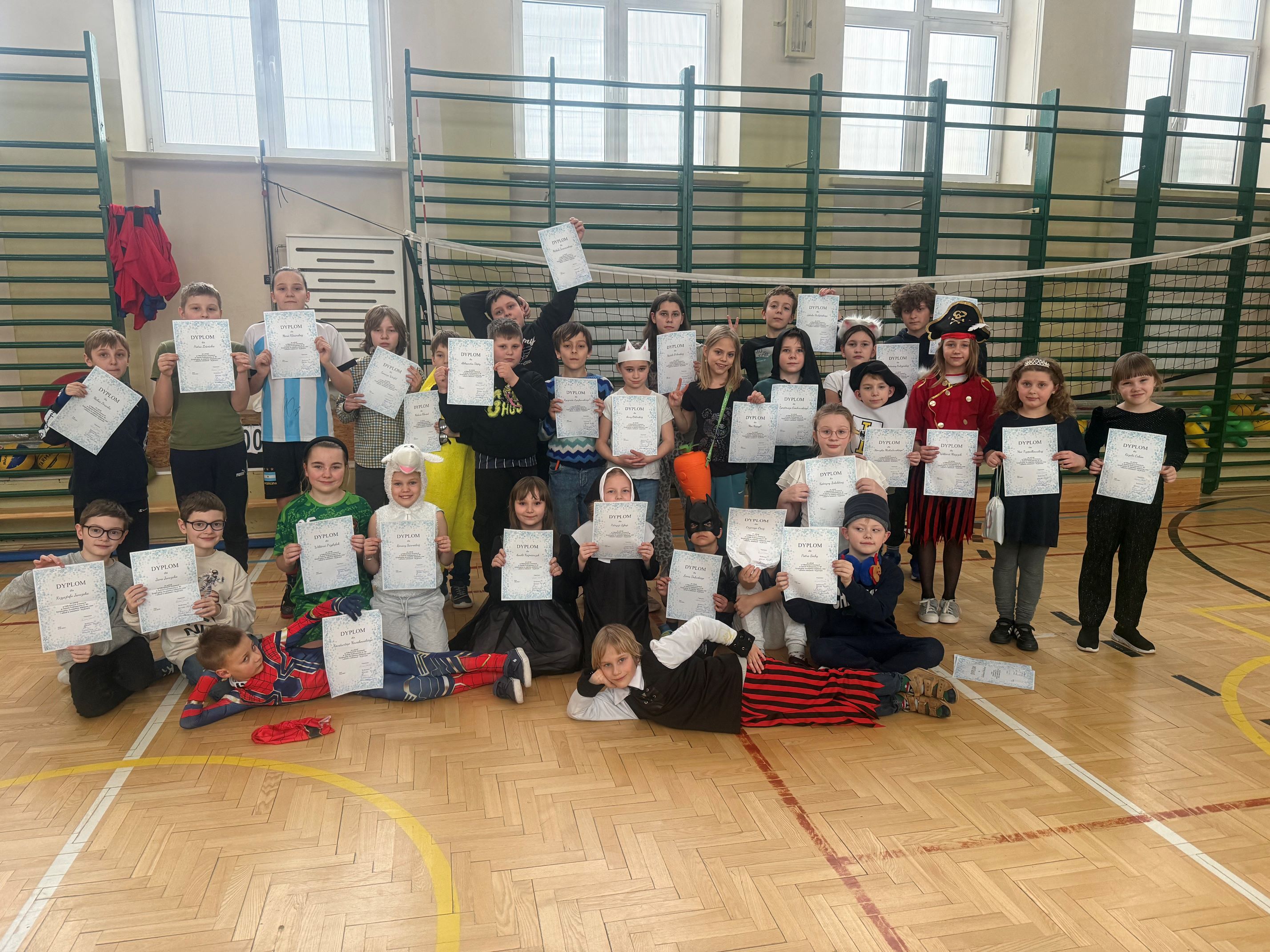Po obiedzie na sali gimnastycznej odbył się bal karnawałowy, podczas którego wszyscy świetnie się bawili. Na zakończenie każdy uczestnik półkolonii otrzymał pamiątkowy dyplom.