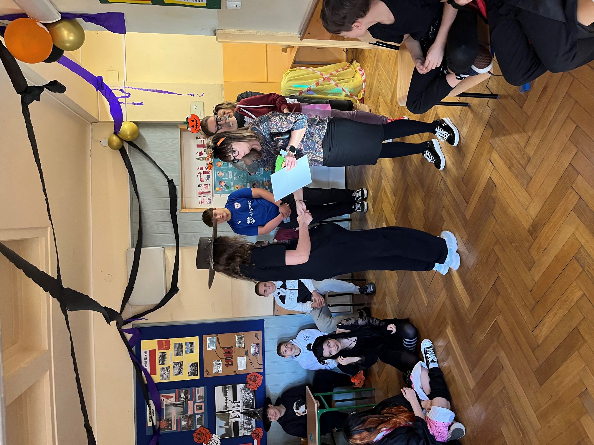 Po ogłoszeniu wyników wszyscy uczniowie ruszyli do długo wyczekiwanej zabawy tanecznej. Na zakończenie każdy otrzymał słodkiego cukierka – żeby uniknąć psikusów!
