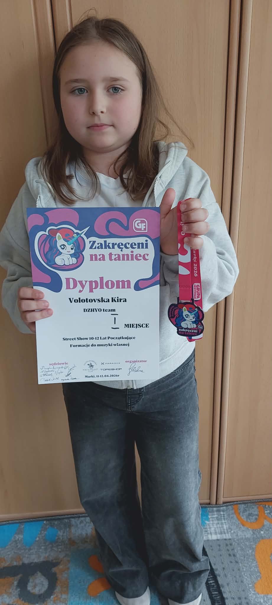 Z radością informujemy, że uczennica naszej szkoły, Kira z klasy trzeciej, zdobyła I miejsce w konkursie „Zakręceni na taniec”!