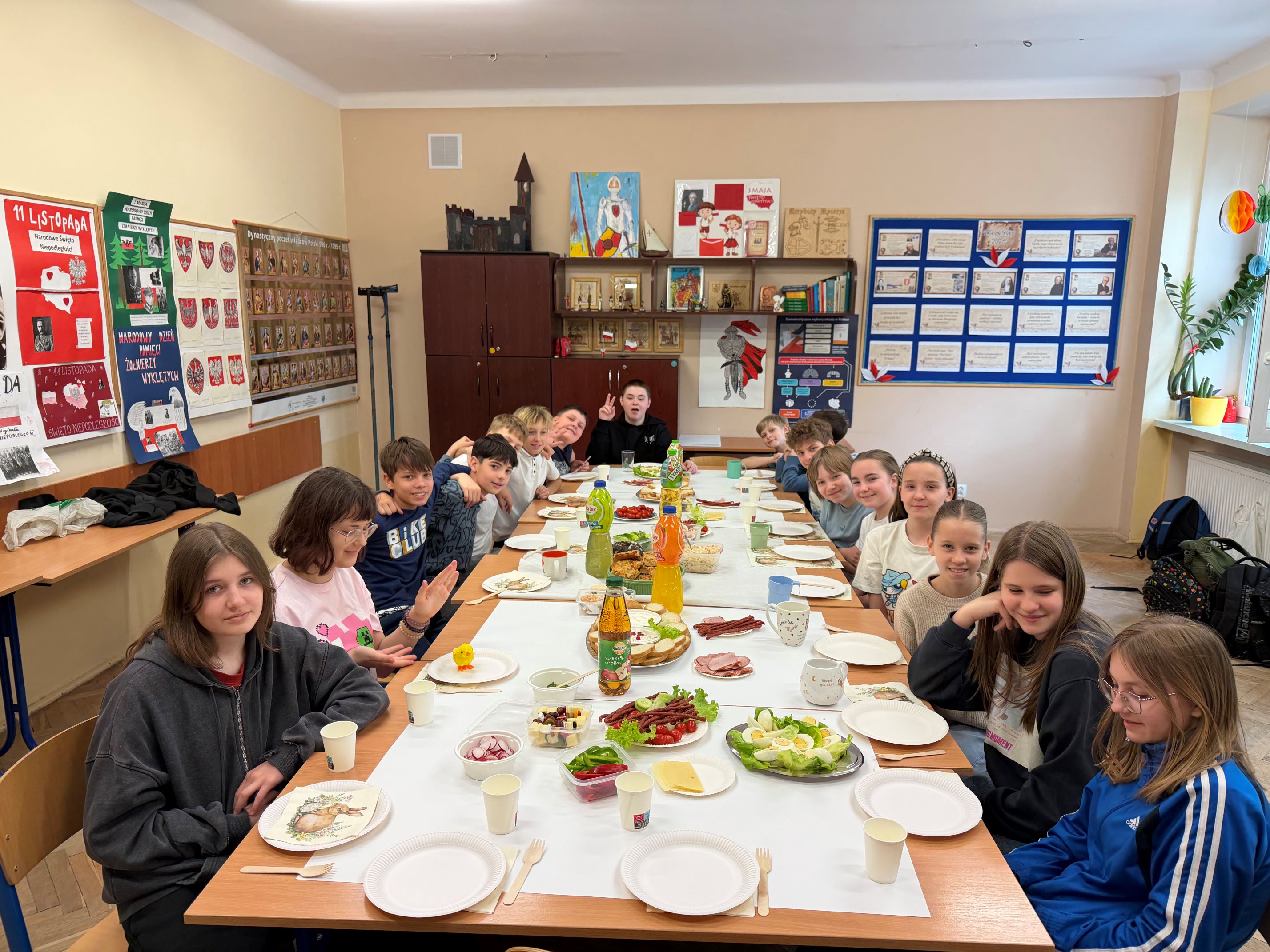 W dniu 31 marca w klasie 5a odbyło się wielkanocne śniadanie. Na stołach pojawiły się domowe wypieki, tradycyjne potrawy i kolorowe dekoracje, które wprowadziły nas w świąteczny nastrój.